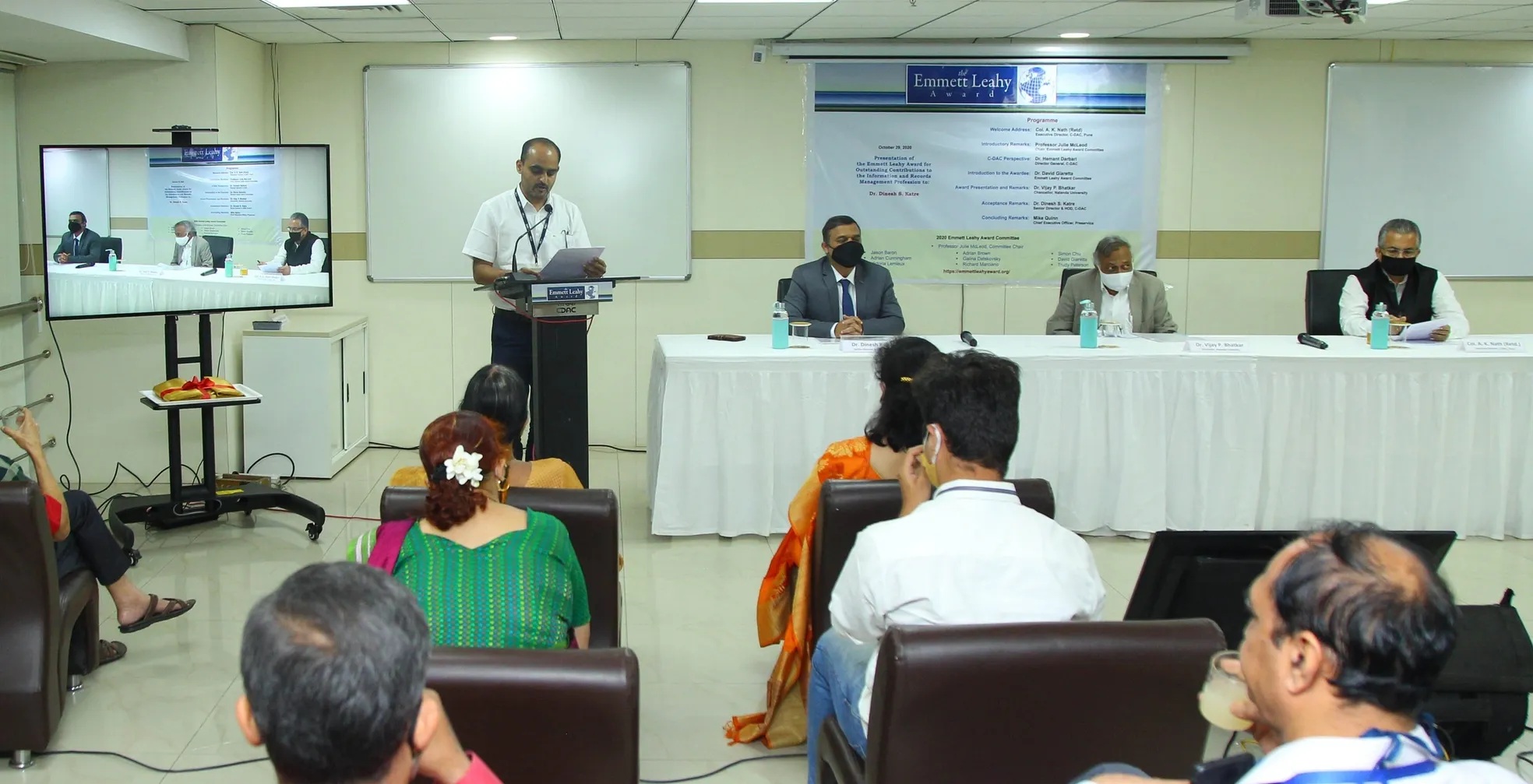 Warm greetings to all the dignitaries at C-DAC and those joining virtually! My sincere thanks to Dr. Julie McLeod, the Chair of Emmett Leahy Award Committee (ELAC), Jason Baron (the former Chair), Dr. David Giaretta, and all the honourable committee members for finding me worthy of this recognition. The global pandemic has made this virtual award presentation very unique. Also, receiving such a prestigious honour in the presence of my colleagues and associates in India makes it very special for me.