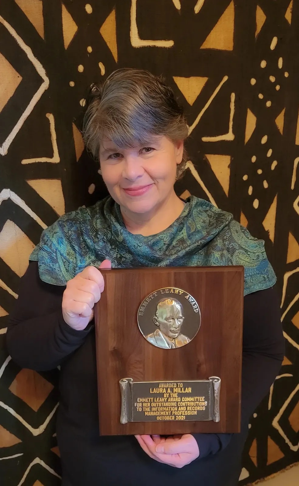 The 2021 award recognizes Dr Laura Millar’s sustained leadership in information and records management programme development, education, professional leadership, and mentoring.This includes her powerful advocacy of the value of individual and collective memory and the importance of documentary evidence in decision-making, in the broader context of upholding a ‘respectful, democratic, and self-aware world’. The Emmett Leahy Committee recognized her training, consultancy, publication, and voluntary work that have not only made a positive impact on many different organisations in both the academic and professional sectors, at national and international levels, but also on the careers of individuals.